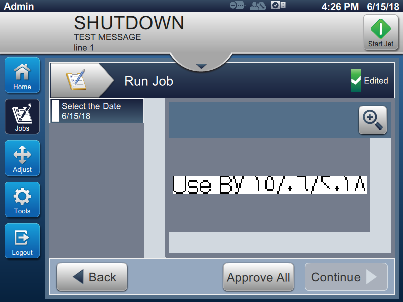A tick mark appears with the prompt message. The preview is updated to reflect the selected date. Touch Approve All and then on Continue to display the next screen. The print preview is displayed. |