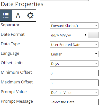 From the Date Properties window, Select ‘Days’ from Offset Units drop down list. Set the Minimum Offset as ‘0’ days and Maximum Offset as ‘3’ days. |