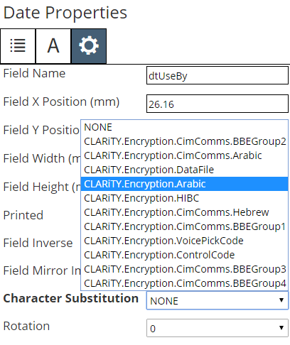 From the drop down list under Character Substitution, select CLARiTY.Encryption.Arabic. |