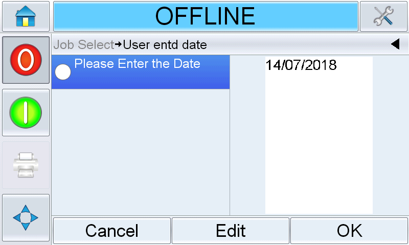 The printer calculates a range of dates that can be selected based on the current printer date and the offsets that we defined earlier. |