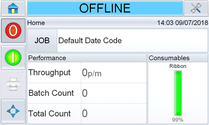 Save the job file to the application and click Back to return to home page. The job ‘User entd date’ date is added to the job list under DataFlex 6230 Continuous and variant 32mm. |