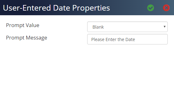 Enter a prompt message that is to be displayed when the operator selects the job (Please Enter the Date in this example) and click ✓. Leave the Prompt Value ‘Blank’ in this example. The Last Value or Default Value can also be used as a prompt during job set up. |