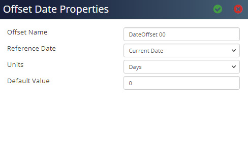 Select Offset from the Select Date Type window. The Offset Date Properties window appears as follows: |
