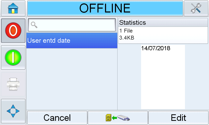 Name the file as ‘User entd date’. Note that this will be the name of the job in the printer for selection, once we transfer this message to the printer. |
