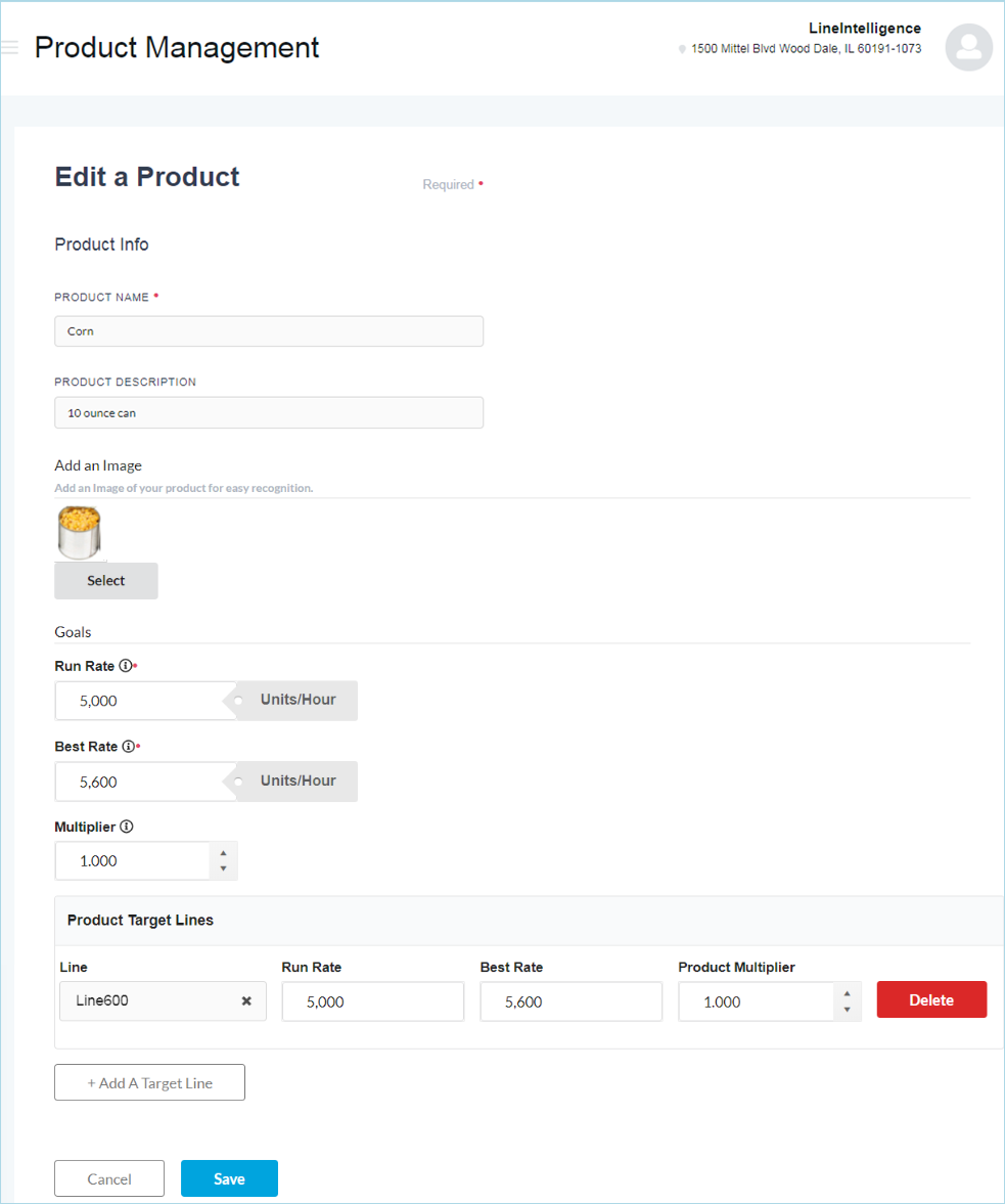 If you are running this product on multiple lines with different Run Rates, use this option. You can set a Run Rate and Best Rate for a Product on a specific Line. Example: the same product may run at a different rate on two packaging lines. Line one may run at 600 units an hour and line two may run at 800 units an hour since it is a newer line. These rates will override the Line Rates for OEE.