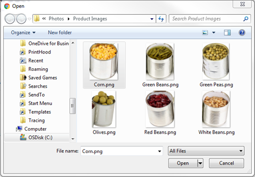 Add an Image: Click on Upload, select the image path and name, and click Open.