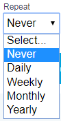 Repeat: Click the dropdown to select how often you want this event to repeat.